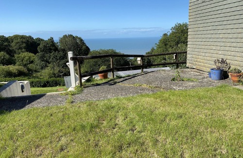 There’s a communal garden area laid to grass next to the adjacent Chalet with a wonderful sea view. Portable picnic chairs & a picnic table are provided for guests use on this area.
