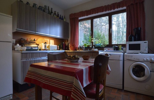 The chalet includes a well-equipped kitchen, and firewood is available for purchase. Whether you're cycling through the Ardennes or relaxing in the garden, this home offers a tranquil base with easy access to adventure. Liège Airport is 72 km away.