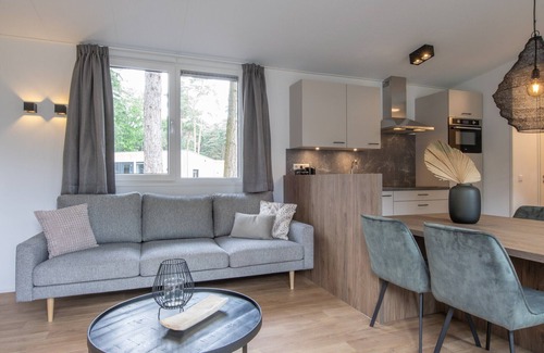 This detached, single-storey chalet is located in the wooded holiday park Bospark "t Wolfsven, 12 km from the pleasant city of Eindhoven. Here you have the best of both worlds; a holiday in green surroundings, but all the amenities of a pleasant city in the (direct) vicinity. The chalet is comfortably and completely furnished. The living room has a smart TV with streaming function and air conditioning, for that little bit more comfort. The open kitchen is fully equipped, including a combination microwave and a dishwasher. There are two bedrooms, one with two single beds in a double arrangement and one bedroom with two single beds. The beds are box-spring beds. The bathroom has a shower and there is a separate toilet. Outside you will find an open garden with terrace and garden furniture. There is parking space for one car near the chalet. The chalets and lodges are connected by hiking trails. This means that loading and unloading and parking is not possible directly at the chalet. become. Per rented accommodation, 1 car is allowed on the park. You can park your car in a central parking lot near the chalet. At holiday park Bospark "t Wolfsven, various types of bungalows, chalets and safari tents can be booked for four, five or six people.