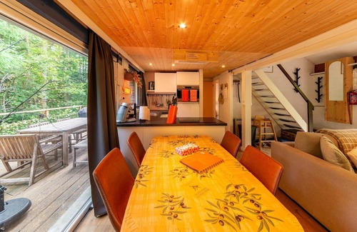 Discover the charm of this chalet in Hastière, which can accommodate six guests and where dogs are welcome. This cosy accommodation has three comfortable bedrooms with double beds, a bathroom with toilet and shower, and a spacious living room with a pellet stove and television. Enjoy the outdoors on the spacious terrace, complete with a barbecue and garden furniture, ideal for cosy evenings with friends or family. The open kitchen is fully equipped with modern appliances such as an air fryer, combi oven, kettle, coffee maker and a fridge with freezer compartment. Although there is no dishwasher, washing up by hand is part of the authentic chalet experience. This is the perfect place to cook together and enjoy delicious meals while admiring the beautiful nature around you. Hastière itself is a true paradise for nature lovers and history buffs, with countless hiking and cycling trails that lead you through breathtaking landscapes. The region offers a wealth of historical sights, such as the impressive castle of Freÿr, the Abbey of Saint-Hadelin and the Heritage Museum of Hastière. For the adventurous souls, there are various activities available, from water sports to mountain biking. What's more, the chalet is only a 20-minute drive from picturesque Dinant, a town known for its dramatic scenery and rich history. Here you can visit the famous citadel and enjoy local delicacies such as the delicious couques de Dinant. Hastière and its surroundings offer the perfect combination of tranquillity, adventure and culture, making your stay unforgettable. A security deposit of EUR 200,50 will be required closer to your check-in date. You will receive a separate communication with the payment link. The security deposit ensures a smooth stay and covers any additional services such as cleaning, service charges, consumption, damages or any additional charges incurred during stay. Any balance from the deposit will be refunded within 21 days after checkout.