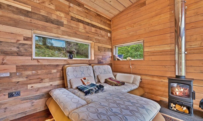 Tucked deep within a 400-acre native Scottish forest estate, this secluded chalet is a perfect hideaway for two guests. The open-plan cabin offers a cozy retreat with a mezzanine-level super-king bed accessed via a wooden ladder, a large sofa, and a modern kitchen space. It features a charming log burner for warmth and ambiance, large windows for stunning forest views, and a private balcony equipped with a hammock and Chiminea. Ideal for couples seeking a quiet escape, the cabin invites guests to relax with nature and enjoy a true digital detox amid tranquil woodland and the gentle sounds of a nearby stream. Located in the heart of the Scottish Highlands, the property is just 30 minutes from the famous Loch Ness and the majestic Glen Affric. Guests can enjoy an abundance of hiking opportunities and stunning landscapes filled with lochs, mountains, and forest trails. The nearby village of Beauly, just 20 minutes away, is the gateway to the renowned North Coast 500 route, offering a scenic drive through some of Scotland’s most iconic vistas. The property is well situated for exploring natural attractions while maintaining total seclusion. Additional amenities include an eco-friendly wood burner, oven, hob, kettle, small fridge, and a modern bathroom with shower, basin, and WC. Bed linen, towels, heating, and parking are included in the stay. While pets are not permitted, the property offers peace, privacy, and the simple pleasures of a forest retreat. A discreetly placed CCTV camera is installed for guest safety. This nature-focused escape blends rustic charm with modern comfort for a memorable Highlands experience.