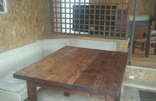 2 rooms that can accommodate a maximum of 4 people: 1 140x190 bed on the mezzanine and a sofa (pull-out beds) in the living room.