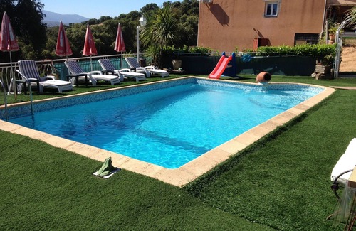 Yes, this Chalet in Sarrola-Carcopino has a swimming pool. Check the Facility Overview section for details about the pool and other available facilities.