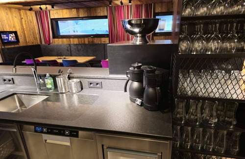 Layout: Ground floor: (bedroom(double bed(180 x 200 cm), TV), bedroom(double bed(160 x 200 cm), TV), Bedroom with bathroom(double bed(180 x 200 cm), double sofa bed, TV, shower, washbasin, toilet), Bedroom with bathroom(double bed(180 x 200 cm), double sofa bed, TV, shower, washbasin, toilet), bathroom(shower, washbasin, toilet)) On the 1st floor: (bedroom(double bed(180 x 200 cm), TV), bedroom(double bed(160 x 200 cm), TV), Bedroom with bathroom(double bed(180 x 200 cm), double sofa bed, TV, shower, washbasin, toilet), Bedroom with bathroom(double bed(180 x 200 cm), double sofa bed, TV, shower, washbasin, toilet), bathroom(shower, washbasin, toilet)) On the 2nd floor: (Living room(TV, fireplace, seating area), Large kitchen(dining table, hob, electric kettle, toaster, hood, coffee machine, espresso machine, oven, microwave, dishwasher, fridge, fridge-freezer), storage, terrace, garden furniture) Basement: (bathroom, toilet(shower, toilet), relaxation area, sauna(sauna), Bubble bath, deckchairs, swimming pool(private)) Attic: (roof terrace, garden furniture, BBQ) ski storage, tumble dryer, washing machine, parking, air to water heatpump, party games