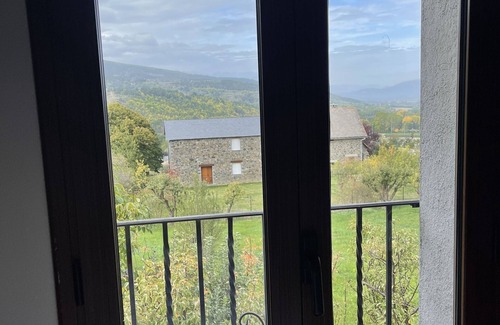 Individual house. Large private garden with fenced enclosure and fruit trees. Barbecue. Floor plant: open kitchen, large living room with fireplace and views to mountain, 1 toilet. First floor: 1 room with full bed, a desk and views. Another room with 2 individual beds and views. 1 Full bathroom with shower. Very quiet area, with French boulangerie and small delivery at 5 min walking distance. Supermarket at 5 min by car. Air conditioning.