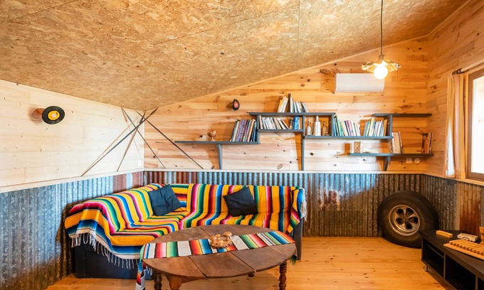 A warm and functional interior: enjoy a comfortable master bedroom with a practical wardrobe for all your belongings. A sofa bed is also at your disposal for peaceful nights. The bathroom is equipped with a bathtub, and the kitchen allows you to prepare delicious meals. For cool evenings, relax by the wood stove, or enjoy the reversible air conditioning in summer. There is no television, but you stay connected thanks to available 4G Internet. A library and games are also at your disposal.
