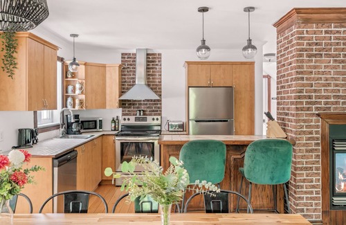 A living room, a dining area, a BBQ grill, and a fireplace are featured at this 2-bedroom, 1.5-bathroom rental. Bathroom amenities include a hair dryer, towels, and toilet paper. The kitchen is equipped with an oven, a refrigerator, and a dishwasher, as well as a coffee maker, an electric kettle, and a microwave. And you can even pack a bit lighter because there's a washer and dryer.