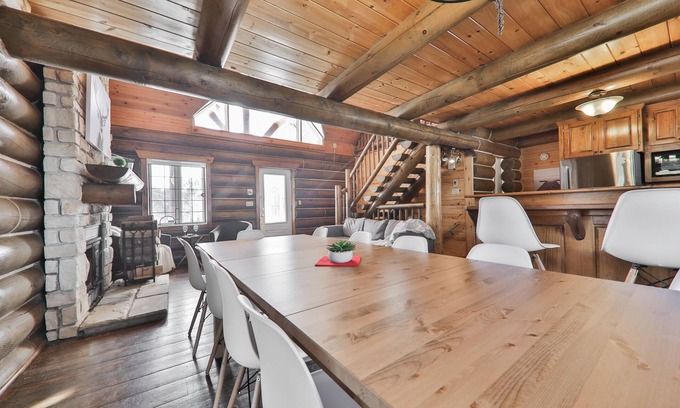 Best-rates for the Chalet La Bûcheronne starts from $336 per night with includes Internet, Parking, Pet Friendly, Fireplace/Heating, Entertainment, Barbecue/Outdoor Cooking, Laundry, TV, Balcony/Terrace, Kitchen, Air Conditioner, Designated Smoking Area, Sports/Activities, Child Friendly, Hot Tub with all other amenities. Perfect for Weddings is committed to ensuring every guest experiences a comfortable and extraordinary stay, whether planning a romantic getaway, a honeymoon, a pet-friendly stay, or celebrating with the entire wedding party.