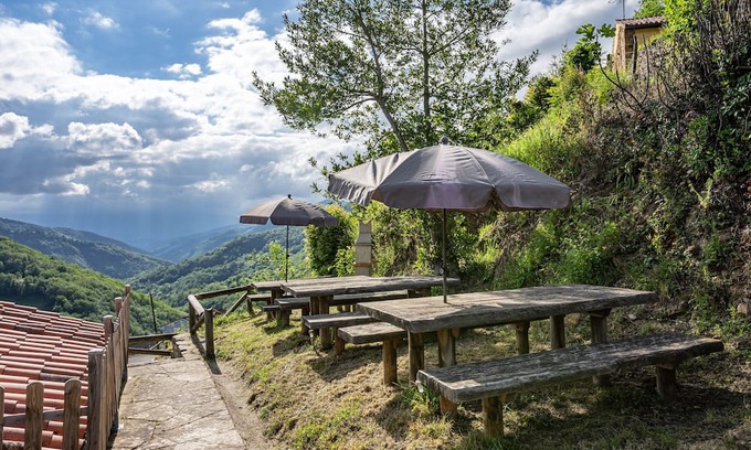 The chalet La Castañar - La Vallicuerra in Hueria de Urbiés is the ideal accommodation for a relaxing holiday with a mountain view. The 2-storey property consists of a living room, a fully-equipped kitchen, 2 bedrooms and 1 bathroom and can therefore accommodate 4 people. Additional amenities include high-speed Wi-Fi (suitable for video calls) with a dedicated workspace for home office, a TV, a washing machine as well as children's books and toys. A high chair and 2 baby cots are also available. This accommodation does not offer: air conditioning. This chalet features a private open terrace for evening relaxation.