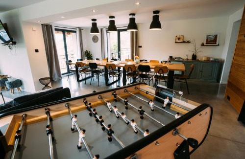 Offering a garden, CHALET LA FOUGERE 15 personnes 180m2 bauges Savoie Thoiry offers accommodations in Thoiry. This property offers access to a balcony, free private parking, and free Wifi. The accommodation features bicycle parking and a shared lounge for guests. Providing a terrace and mountain views, the spacious vacation home includes 4 bedrooms, a living room, satellite flat-screen TV, an equipped kitchen, and 4 bathrooms with a shower. Towels and bed linen are provided in the vacation home. The property has an outdoor dining area. Guests can make the most of the warm weather with the property's barbecue facilities. For guests with children, the vacation home provides a children's playground. Skiing and hiking are possible within the area, and CHALET LA FOUGERE 15 personnes 180m2 bauges Savoie Thoiry offers ski storage space. Fountain of Elephants is 8.5 miles from the accommodation, while SavoiExpo is 11 miles away. Chambéry-Savoie Airport is 15 miles from the property.