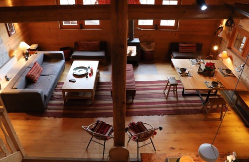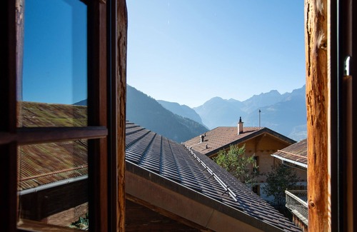 "Chalet La Grange", 3-room chalet 86 m2 on 3 levels. Partly with sloping ceilings, renovated in 2021, comfortable and beautiful furnishings: large living/dining room with Scandinavian wood stove and dining table. Exit to the balcony, south facing position and west facing position. 1 room with 1 french bed (1 x 180 cm), shower. Open kitchen in the entrance (oven, dishwasher, 4 induction hot plates, electric coffee machine, Capsules for coffee machine (Nespresso) extra, raclette grill, fondue Set (cheese)). Exit to the balcony, south facing position and west facing position. Shower, sep. WC. On the lower ground floor: luggage room. Upper floor: 1 room with sloping ceilings, ceiling height 80 - 200 cm with 4 beds (80 cm). Small balcony, south facing position and west facing position. Balcony furniture. View of the mountains. Facilities: washing machine, dryer. Internet (WiFi, free). Please note: non-smoking house. Maximum 1 pet/ dog allowed.
