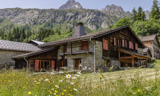 Once a farmhouse and now a classic and beautifully timbered chalet, Chalet Les Choucas has wonderful views of Les Grands Montets and the Mont Blanc range. It is nestled in the delightful Alpine hamlet of Les Frasserands at the top of the Chamonix Valley.This mountain retreat is perfectly placed between the ski areas of Le Tour (3 minutes drive) and Les Grands Montets (7 minutes). There is parking for 2 or 3 cars and there is a ski locker in the outside porch area. In summer months there are some magical mountain walks starting right on your doorstep. What's more, less than 5 minutes walk away you will find the ski bus stop and little train station which serves the entire valley. The cleverly designed living area is spacious and open, with the focal point being a lovely wood burner in the centre which separates the seating and dining areas. The dining area leads into a fully equipped kitchen with features such as a glass floor panel to reveal the old cellar steps below. Also off the dining area is a cosy snug for lazy evenings in front of the television. A warm and authentic style is apparent throughout.From the large hallway you can reach the sauna (which has its own shower), the perfect way to unwind and relax after a day's skiing or hiking in the mountains. Here there is also a separate cloakroom.Venture upstairs and you will find a beautiful double room and ensuite bathroom, plus a double/twin room with an ensuite shower room. Then two further double/twin bedrooms (one with a shower and basin, the other with a basin) plus a dormitory style room which has 6 bunk beds (and basin). There is a separate cloakroom and a separate shower room. With a further single bedroom downstairs off the kitchen, this chalet is simply perfect for a large family or group of friends looking for their own quiet space in the mountains.Please note that due to our licensing and insurance arrangements only our trained staff may work at the chalet - please contact us if you would like details.