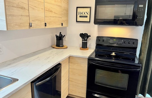 In the living room, enjoy a wood-burning fireplace to create a warm atmosphere. In the basement, you'll find many board games as well as a 65-inch TV with Netflix.