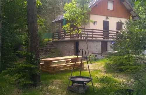 This chalet offers a private outdoor space with a garden, a terrace, a barbecue, and a playground.