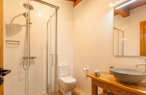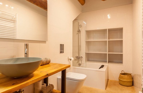 The chalet "Masia Can Pla" in Sant Mateu de Bages is the perfect accommodation for a stress-free holiday with your loved ones. The 180 m² property consists of a living room, a fully-equipped kitchen with a dishwasher, 4 bedrooms and 4 bathrooms and can therefore accommodate 11 people. Additional amenities include high-speed Wi-Fi, a fan, heating, a washing machine as well as a TV.