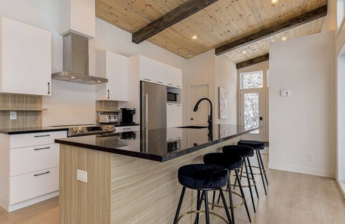 Outdoors, a spacious partially covered terrace is the perfect spot to enjoy a grilled meal, with a seasonal outdoor fireplace (available May to November) and a private year-round hot tub!