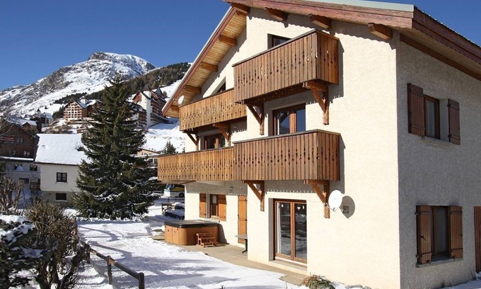 Welcome to Chalet Montagnard, an enchanting ski chalet nestled in the heart of Les Deux Alpes, Isere. This rustic yet elegant accommodation is ideal for your dream wedding, offering a stunning backdrop and ample space for family and friends to celebrate your special day. With its impressive eight bedrooms and intimate private hot tub, it provides the perfect blend of comfort, luxury, and romance that will make your wedding unforgettable.