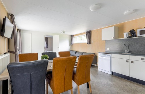 A cosy Brabant campsite where there is plenty to do such as swimming in the pool, playing volleyball and tennis, playing in the playground or on the large trampoline, fishing in the campsite's own fishpond, taking part in the children's entertainment and much more. That is the home base for this beautiful chalet. The chalet has a modern kitchen, fine open seating area and good beds. All this surrounded by great nature. In short, perfect for a wonderful holiday
