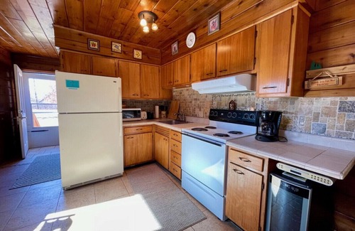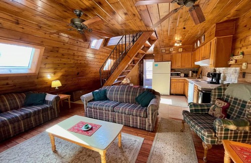 This Chalet welcomes you with a warm and inviting ambiance, promising a delightful retreat for your vacation. The main floor boasts a large common area, seamlessly combining the kitchen, dining area, and living room into a welcoming space where you can gather with family and friends. The fully stocked kitchen ensures that your culinary adventures are a breeze, while the living room provides the perfect spot to relax and unwind after a day of exploration. A full bathroom on the main floor adds convenience to your stay, and a few essentials, including stocked linens and towels! Upstairs, you'll find two charming bedrooms, each offering a cozy retreat for a peaceful night's sleep!