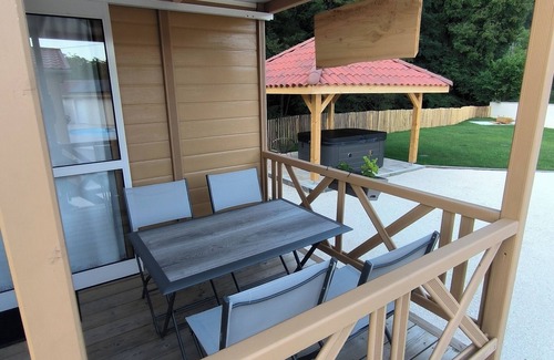 After you return to this 269-sq-ft chalet, you can unwind by the communal pool or sip a drink in the hot tub; you may also like the garden and deck or patio. For a change of scenery, come inside and enjoy the free WiFi and TV.