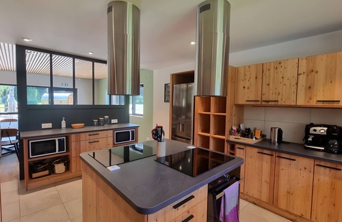 The chalet Privatisation Hostel, which is situated in Faverges, overlooks the Alps. The 80 m² property consists of a living room, a well-equipped kitchen, 4 bedrooms and 1 bathroom as well as an additional toilet and can therefore accommodate 15 people. Additional amenities include high-speed Wi-Fi (suitable for video calls), a TV, a washing machine as well as children's books and toys. On top of that, a table tennis table is also provided for your enjoyment. A baby cot and a high chair are also available. This accommodation does not offer: air conditioning. This chalet features a private outdoor area, including an open terrace, 2 covered terraces, a balcony, and a barbecue.