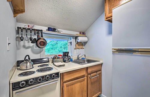 Craving an escape off the beaten path? Pack your bags for Roan Mountain to experience a wooded wonderland at ‘The Chalet Retreat’ with this 1-bath studio as your home base. Explore Watauga Lake by boat, hike through Roan Mountain State Park, then whip up some picnic essentials in the well-equipped kitchen to enjoy by the babbling brook across the street. No matter what your itinerary looks like while visiting Tennessee, this vacation rental cabin is sure to please all wilderness explorers.