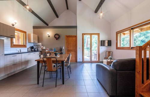 The chalet Sambuy - Val de Tamié in Faverges is the ideal accommodation for a relaxing holiday with a view of the Alps. The 80 m² property consists of a living room with a sofa bed for 2 people, a kitchen, 2 bedrooms and 1 bathroom as well as an additional toilet and can therefore accommodate 10 people. Additional amenities include Wi-Fi, a TV as well as a washing machine. In addition, a table tennis table is available for your use. A baby cot and a high chair are also available. This accommodation does not offer: air conditioning. This chalet features private terraces, both open and covered, perfect for relaxing in the evenings.