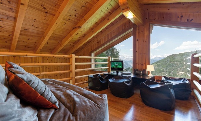 Best-rates for the Riddes ski chalet starts from $712 per night with includes Pet Friendly, TV, View, Security/Safety, Wellness Facilities, Internet, Kitchen, Laundry, Pool, Bedding/Linens, Spa, Fireplace/Heating, Restaurant, Guest Services, Barbecue/Outdoor Cooking, Child Friendly, Parking, Ocean View, Balcony/Terrace, Hot Tub with all other amenities. Perfect for Weddings is committed to ensuring every guest experiences a comfortable and extraordinary stay, whether planning a romantic getaway, a honeymoon, a pet-friendly stay, or celebrating with the entire wedding party.