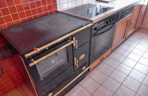 "Chalet Tsi-No", 5-room chalet 105 m2 on 3 levels. Practical and comfortable furnishings: lounge with open-hearth fireplace and TV (flat screen), radio and DVD. Exit to the balcony, south facing position. Office. 1 room with 2 pull-out beds (2 pers. 2 x 90 cm). 1 room with 1 french bed (1 x 140 cm). Shower/WC. On the lower ground floor: large kitchen (oven, dishwasher, 4 ceramic glass hob hotplates, microwave, electric coffee machine, Capsules for coffee machine (Nespresso) extra, raclette grill, fondue Set (cheese)) with bar, dining table. Sep. WC. Upper floor: (steep stair), 1 room with sloping ceilings, ceiling height 120 - 140 cm, without wardrobe with 1 french bed (1 x 160 cm). Small balcony, south facing position, small garden, west facing position. Terrace furniture, barbecue. Very beautiful panoramic view of the mountains. Facilities: washing machine, dryer. Internet (WiFi, free). Reserved parking (2 cars). Please note: non-smoking house. 1 pet/ dog allowed.