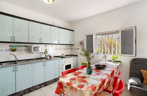 The chalet "Vista Paraíso De Chira" in San Bartolomé de Tirajana is a great destination for a getaway with a mountain view. This 130 m² property consists of a living room with 2 sofa beds for 2 people each, a fully-equipped kitchen, 3 bedrooms, and 1 bathroom, and can accommodate 11 people. On-site amenities include high-speed Wi-Fi (suitable for video calls), a smart TV with streaming services, a fan, a washing machine, and a game console. A high chair and 2 baby cots are also available.