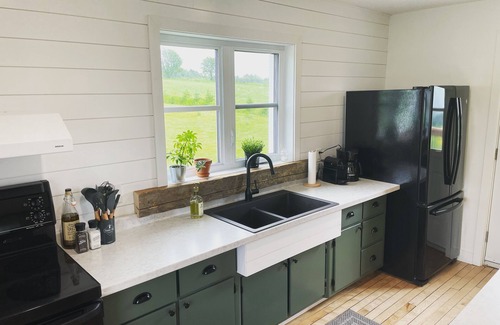 This 3-bedroom, 1-bathroom rental features a BBQ grill, a fireplace, air conditioning, and a desk. Bathroom amenities include a hair dryer, towels, and toilet paper. The kitchen is equipped with an oven, a stovetop, and a refrigerator, as well as a coffee maker, a microwave, and cookware. And because there's a washer and dryer, you can go a bit lighter on your packing.