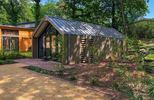 In Forest Lodge 4 you can retreat in peace and quiet in a small but nice accommodation. The detached chalet is on the ground floor and suitable for 4 persons. In the cosy living room you find a sitting area with television and French doors to the furnished terrace, a dining area and a kitchen with a 4-burner cooker, dishwasher and Nespresso Machine. Forest Lodge 4 has 2 bedrooms, 1 with a double bed and 1 with 2 single beds. The bathroom has a toilet, shower and sink. You have free Wi-Fi in the chalet and you can park 1 car there.