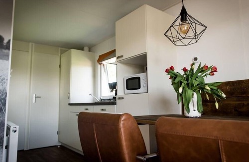 Panorama Chalet 5 is a holiday home with a contemporary interior and a beautiful view from the Gulperberg. The detached chalet is on the ground floor and suitable for 5 persons. The colourful living room has a sitting area with television, a dining table with chairs and a kitchen which is equipped with a filter coffee machine, dishwasher and microwave. The chalet has 2 bedrooms, 1 of which has a bunk bed and a single bed and 1 with a double bed. The bathroom has a shower, toilet and sink. Outside you can enjoy a covered terrace with garden furniture. Panorama Chalet 5 has parking space for one car and free Wi-Fi is available.