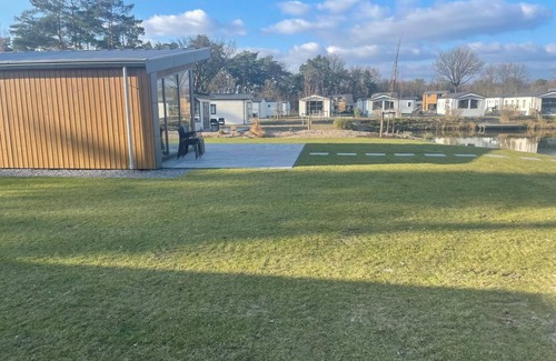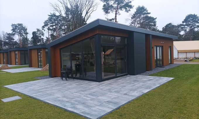Pavilion Maximum 4 is a spacious and ground-level chalet with a waterfront terrace. The chalet can accommodate 4 people and has a waterfront view. The modern living room gives a feeling of freedom through the large windows and here you can relax in the seating area with television. The luxury kitchen is fully equipped, including a filter coffee maker, combination microwave and dishwasher. Pavilion Maximum 4 has 2 bedrooms of which 1 bedroom with 2 single beds and 1 bedroom with a double bed. The bathroom has a walk-in shower, sink and toilet. At the chalet you can park 1 car and use the free Wi-Fi.