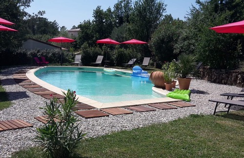 A little corner of paradise in the middle of nature, in the countryside without being distant from all conveniences. This green setting is ideal for a wonderful holiday. To bathe you can enjoy a nice communal swimming pool with other tenants or discover the wonderful and numerous rivers of the Ardeche. All around the property you will find spaces of tranquility and tranquility. You can share your family meals on the shaded terrace and enjoy a moment of tranquility in an outdoor lounge while your children are busy in a space provided for them.