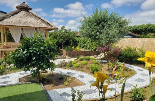 Chalet Zure Ondoan - SPA et piscine chauffée is a recently renovated chalet in Tarnos where guests can make the most of its outdoor swimming pool, open-air bath, and garden. Spa facilities is available for guests, along with a solarium. The accommodation features a hot tub, free Wifi throughout the property, and an ATM. Providing access to a patio with garden views, the air-conditioned chalet consists of 2 bedrooms. Featuring a terrace with pool views, this chalet also comes with a flat-screen TV, a well-equipped kitchen with a dishwasher, an oven, and a microwave, as well as 1 bathroom with a hot tub and a hair dryer. This chalet is allergy-free and non-smoking. A mini-market is available at the chalet. The area is popular for cycling and hiking, and bike rental is available at this 4-star chalet. Kids pool is also available for guests at the chalet. Biarritz La Négresse Train Station is 12 miles from Chalet Zure Ondoan - SPA et piscine chauffée, while Saint Jean de Luz Train Station is 18 miles from the property. Biarritz Airport is 7.5 miles away.