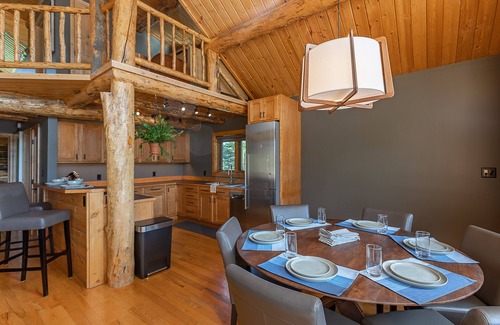 The lodge combines elegance and comfort. Newly furnished in 2024, its cozy ambiance is matched by thoughtful design. Luxurious beds and modern amenities ensure restful nights. Unwind in a soothing bath, cook with Bosch appliances, and dine with scenic views. The large deck, perfect for barbecues or relaxing in rocking chairs, offers a tranquil space for contemplation.