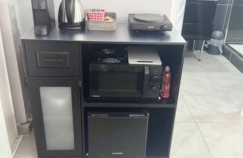As you settle into this 1-bedroom, 1-bathroom rental, you'll find a BBQ grill, air conditioning, and local meal delivery service. Bathroom amenities include a hair dryer, towels, and toilet paper. Prepare a home-cooked meal in the kitchen, complete with an oven, a stovetop, and a refrigerator, as well as a coffee maker, an electric kettle, and a microwave. And because there's access to laundry facilities, you can go a bit lighter on your packing.