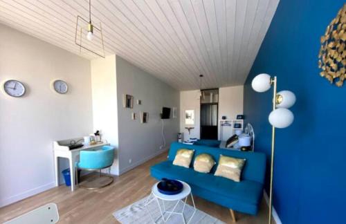 Chambre Californie - Old School offers accommodations in Port-Joinville, a 13-minute walk from Plage de la Borgne. This property offers access to a terrace and free private parking. The accommodation offers a shared kitchen and luggage storage for guests. With free Wifi, this guest house provides a flat-screen TV, a washing machine, and a fully equipped kitchen with a dishwasher and oven. Towels and bed linen are provided in the guest house. For added privacy, the accommodation has a private entrance and soundproofing. Breakfast can be enjoyed on-site, which includes fresh pastries and juice. Guests can also relax in the garden, next to the saltwater pool, or in the shared lounge area. Nantes Atlantique Airport is 55 miles away.