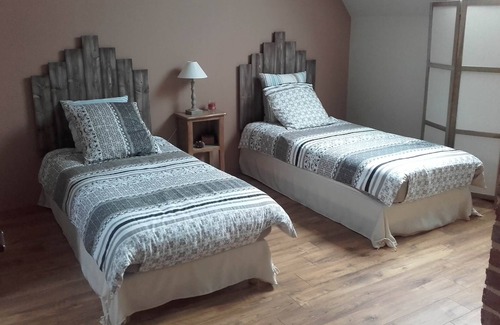 Double room of 22 m² located on the first floor of our house - Private shower room and WC in the room - Bed 180x190 or 2 twin beds 90x190 - Equipped with a capsule coffee machine - Fan - Hair dryer - Shower gel and shampoo included - Household linen included - Free WIFI
