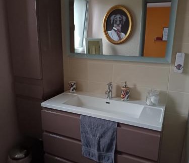 Providing a garden, Chambre d'Hôtes provides accommodations in Chemiré-le-Gaudin. Both free Wifi and parking on-site are available at the homestay free of charge. Solesmes Abbey is 17 miles from the homestay and Louis-Aragon Multimedia Library is 12 miles away. Towels and bed linen are provided in the homestay. The accommodation offers an air conditioning, a heating, and a private bathroom. Guests at Chambre d'Hôtes can enjoy an à la carte breakfast. Le Mans Circuit is 13 miles from the accommodation, while Antarès is 14 miles away. Tours Loire Valley Airport is 61 miles from the property.