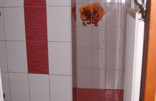 The independent bathroom is located right next to the bedroom with a walk-in shower and wc.