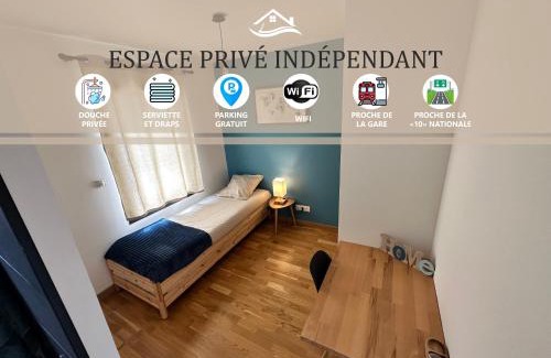 - Chambre privée au calme - Proche gare - Parking gratuit