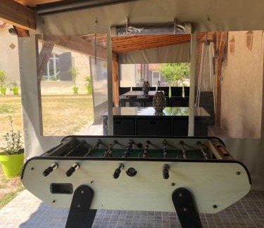 Offering garden views, Chambres d´hotes VILLA CAPSYLVAINE in Captieux provides accommodations and a garden. This property offers a pool with a view, free Wifi, and free private parking. The property offers a children's playground and outdoor furniture. At the guest house, the units have a wardrobe, a flat-screen TV, a private bathroom, bed linen, and towels. At the guest house, all units are soundproof. The rooms are equipped with heating facilities. There is an on-site coffee shop. Guests at the guest house can enjoy table tennis on-site, or go hiking or walking tours in the surrounding area. Casteljaloux Golf Course is 20 miles from Chambres d´hotes VILLA CAPSYLVAINE, while Graves et du Sauternais Golf Course is 25 miles from the property. Bordeaux–Mérignac Airport is 56 miles away.