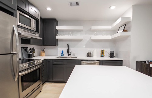 This is a newly developed apartment/guesthouse in a lovely, quiet and safe neighborhood. The apartment has Luxury features like solid hardwood floors, walk-in shower, full kitchen with stainless steel appliances and a mini island. Guests will have access to outdoor pool. You will love spending time in this cozy and trendy apartment.