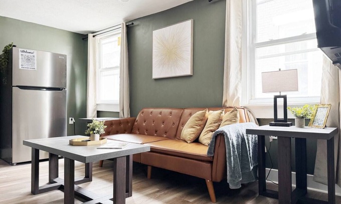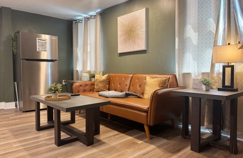 Your Evansville adventure begins at this brilliant 1-bedroom apartment. The cozy living room offers a sofa bed for extra guests, while the bedroom features a comfortable king bed. With amenities like an iron, hair dryer, and AC, you'll feel right at home. The bathroom includes a bidet and bathtub for a touch of luxury. Enjoy your time in Evansville at our charming apartment.