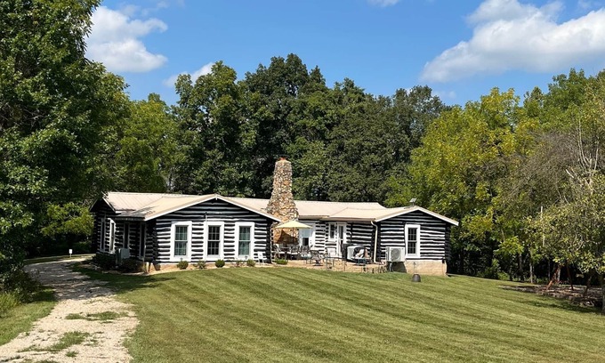 Experience the charm and tranquility of Patten's Landing, an enchanting 82-year-old restored cabin nestled in the heart of Leasburg, Missouri. This five-bedroom log home accommodates up to 10 guests, making it an ideal location for intimate weddings or gatherings. Surrounded by nearly 100 acres of stunning forested land and the serene Meramec River, this beautiful setting offers the perfect backdrop for your special day, ensuring unforgettable memories.