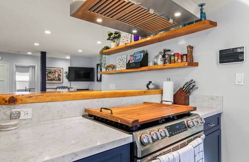 This darling guest favorite Mid-Century home is in a well loved Ventura neighborhood, with tree lined streets and high walkability. Central to beaches, shops, and dining. Beautifully designed with brand new furnishings top to bottom, extremely comfy beds with bamboo bedding that feels like sleeping in a cloud! Nicely appointed kitchen, large light filled Sunroom with large screen TV, fully stocked coffee bar, and dining table with seating for ten.