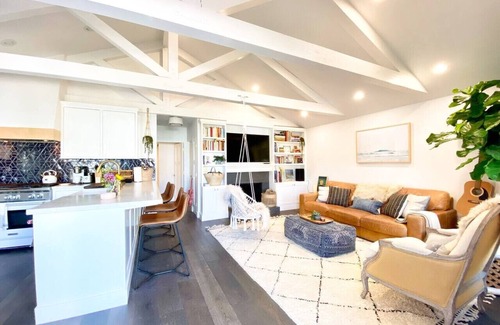 Beautiful, stylish, & romantic 2bd/2 ba cottage just a 5 minute walk from the beach! Step through the gate into a lush & serene bamboo sanctuary…the sounds of water flowing into a small koi pond, a fire pit, a bright & comfortable open concept living area, a fully equipped kitchen & dining area, spacious bedrooms with luxurious bedding & chic bathrooms, wide screen TV’s for perfect movie nights, & a magical backyard with outdoor shower, lounge area, and jacuzzi under the stars. A dream getaway!