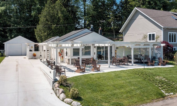 With its prime location near Pere Marquette Beach, a variety of fantastic restaurants just a short walk away, and breathtaking views, this home is the perfect place to unwind and enjoy Muskegon. Step outside onto the large front patio, which overlooks the channel — a favorite spot for guests to relax, watch the boats, or enjoy a delicious dinner al fresco. Our guests have even called this home magical!
